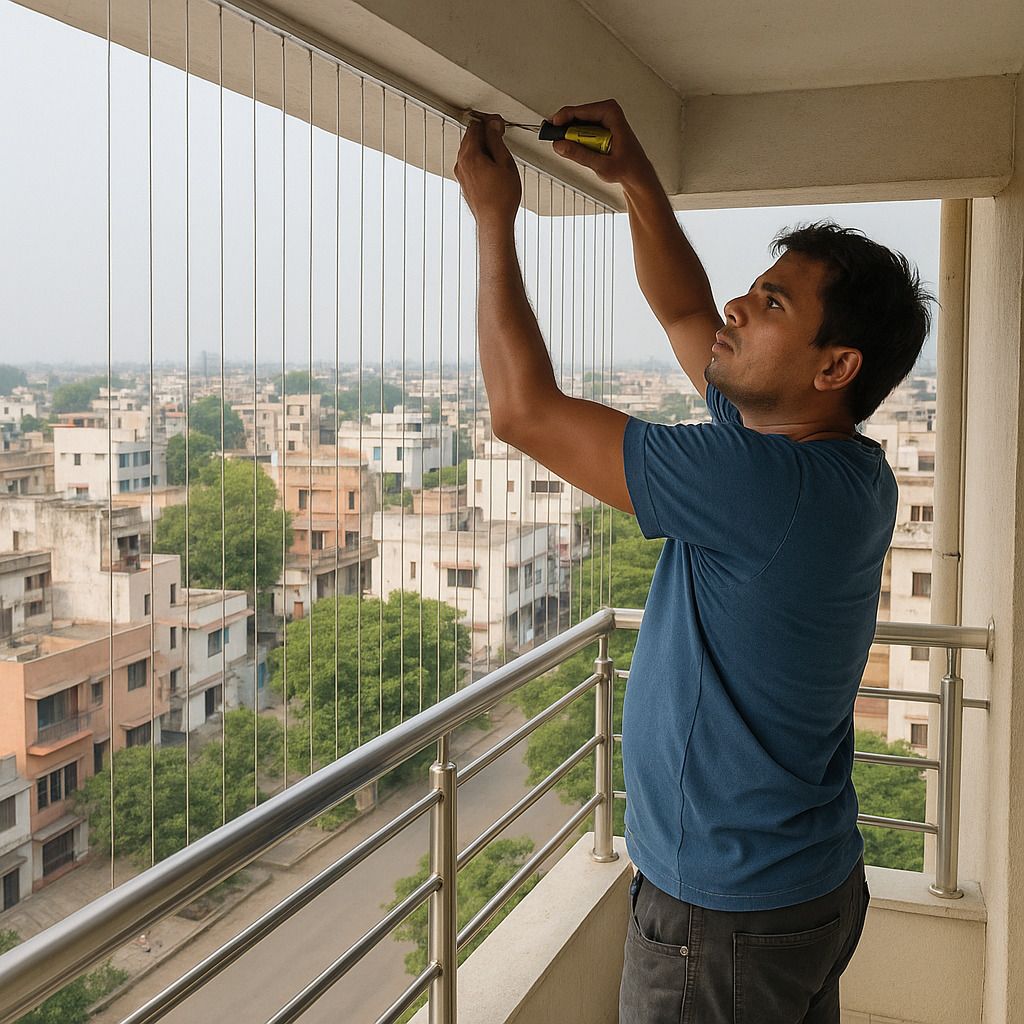Installing an invisible grill begins with a careful site survey and accurate measurement of the balcony or window area. Professionals then fix sturdy frame tracks or U‑channels, typically made of powder‑coated aluminium, using strong anchors or fasteners into the structural wall or slab. High‑tensile stainless steel cables, usually 2–3 mm thick, are threaded vertically or horizontally across the frame and spaced 2–4 inches apart. These cables are then tensioned using specialized tools to create a secure, rigid barrier. After installation, the system is thoroughly checked for alignment, tension, and safety, ensuring it provides reliable protection while maintaining a clean, unobstructed view.